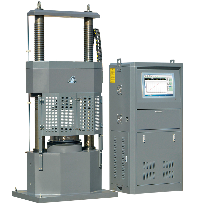 YAW-2000D型電液伺服壓力試驗(yàn)機(jī)是采用了液壓動(dòng)力源驅(qū)動(dòng),電液伺服控制技術(shù),計(jì)算機(jī)數(shù)據(jù)采集處理,可實(shí)現(xiàn)閉環(huán)控制及自動(dòng)檢測(cè)的高精度材料試驗(yàn)設(shè)備,其由試驗(yàn)主機(jī)、油源(液壓動(dòng)力源)、測(cè)控系統(tǒng)、試驗(yàn)器具四部分組成,試驗(yàn)力2000kN。